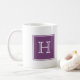 Add your initials or other text to customise this simple and modern Square Monogram Mug in purple and white. This trendy and chic mug is perfect for your morning coffee.