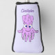 This squid design golf club head cover is an accessory that you slide over the head of a golf club for protection against knocks whilst sitting in your golf bag. Made out of polyester, cotton, and marine vinyl with a choice of different piping colours. You can customise this golf club head cover with any text. Should you require any help with customising then contact us through the message link on this page. Purple squid design golf club head cover.