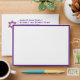 Purple Star of David envelopes suitable to use with HOLOCAUST REMEMBRANCE DAY cards and invitations. Design shows a tiled pattern of coloured Star of David against a purple background on the inside, and the back top flap has another Star of David plus customisable address for you to replace with yours. On the front there is a purple border. Matching items available. Return address labels available separately.