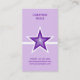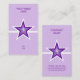 Modern design with a "shining, sparkling" purple and white star on a pale purple background. Business card template with a customisable design for you to personalise with your own text, images and ideas. Please note that this is a printed Image created using original photographs and digital techniques, it does not shine or contain real sparkles.