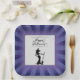 Serve your treats with festive flair using this Purple Starburst Witch Halloween Paper Plate. Featuring a playful witch silhouette standing proudly by her broomstick against a vibrant starburst background. Cheerful smiling jack-o’-lanterns add a touch of Halloween whimsy, while the warm “Happy Halloween” message in elegant script highlights the charming curvy witch design. Perfect for Halloween parties and fall gatherings, this plate combines spooky fun with seasonal style to make every bite a delight.