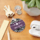 Trendy and modern Stars Zebra Print Sweet Sixteen Keychain featuring a chic black and white zebra print background and a bold purple border adorned with a fun star motif. This girly keychain is a hip and stylish choice for a fun sweet 16 party favor. Easy to customize, simply add party details in the text fields provided. Click "Customize It" to find more personalization options.