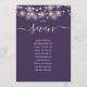 These elegant purple double-sided table number seating chart cards featuring pretty string lights are perfect for all celebrations. Designed by Thisisnotme©