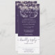 An all-in-one wedding invitation featuring pretty string lights and elegant typography on a purple background. The invitation includes an RSVP card that can be cut off and guest information details. Designed by Thisisnotme©