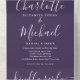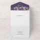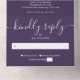 All in one modern minimalist wedding invitation featuring pretty string lights and elegant signature script name and monogram initials on a purple background. The invitation includes a perforated RSVP card. Designed by Thisisnotme©