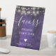 Purple String Lights Rustic Boho Barn Wood Favours Pedestal Sign