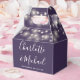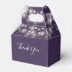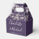 Elegant wedding favour box featuring pretty string lights, chic signature script names and special date on a purple background. You can personalise with your own thank you message on the reverse. A perfect way to say thank you to your guests! Designed by Thisisnotme©