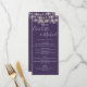 Elegant purple wedding menu card featuring pretty string lights and signature style names. This modern menu card can be personalised with your information in chic white lettering. Designed by Thisisnotme©