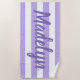 Purple Stripe Script Monogram Name Beach Towel