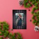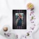 spider web border with purple stripe backgound. Original illustration by Becky Nimoy. Add a photo on the back or a message.
