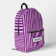 Backpack stripe design that you can customise with any text of your choice. Should you require any help with customising then contact us through the link on this page. Purple stripe design personalised backpack