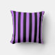 A decorative throw pillow with a purple gradient and black striped pattern.