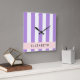 Purple Stripes, Striped Pattern, Lines, Your Name Square Wall Clock