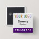 Our square student name button is easily personalizable with your school logo, student name, or other custom text. It attaches with a safety pin back. This affordable name tag is ideal for students (age 10 and up) on field trips, in classrooms, and other situations where quick identification of students is necessary. Designed in purple and other colors (all colors are customizable). Our square buttons are 2 inch x 2 inch. Made in USA. No minimum order quantity and no setup fee.