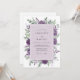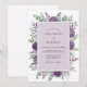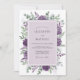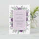 This design features lush purple hydrangeas and soft roses nestled amongst a variety of greenery. Watercolor eucalyptus leaves and delicate ferns create a fresh botanical aesthetic. The palette blends deep violets with soft lavender and sage green for a romantic spring or summer vibe. It evokes a sense of natural elegance for a woodland or outdoor ceremony.