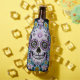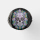 Purple sugar skull with heart and colourful flowers is a Dia de los Muertos design everyone will love!