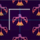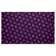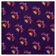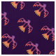 Thunderbird pattern fabric with orange, red and purple sunset coloured bird graphics on a purple background.