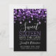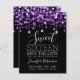 Purple & Black Sweet 16 Birthday Sparkly String Lights "Save the Date" announcement template.
