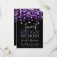 Purple & Black Sweet 16 Birthday Sparkly String Lights "Save the Date" announcement template with party address and RSVP details.