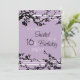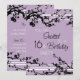 Sweet 16th birthday party invitation card in elegant purple and black floral pattern, delicate and stylish with flowering tree design. Customisable with your party details.