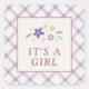 Created to coordinate with the "Sweet Floral" birth announcement collection, this sticker features the phrase "It's a Girl" placed beneath a bouquet of delicate flowers and leaves. The text can be customized, if desired. The design and text is placed over a purple, hand-drawn gingham pattern. These pretty stickers are perfect for labeling gifts and party favors, or they can be used to seal the coordinating "Sweet Floral" self-addressed birth announcement envelopes.