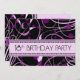Invitations for a girl's 18th birthday party with elegant purple and black swirly design, stylish and pretty, fully customisable with your party details.