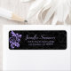 Purple vintage floral swirl on a black vintage damask background. Customisable text in purple.