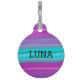 This is a pretty purple and teal watercolor stripes pet ID tag. Just add your pet's name and your information on the back.