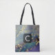 Purple, Teal and Gold Liquid Art Monogram Tote Bag