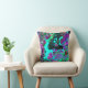 Colourful fluid art abstract modern purple, blue, teal, black pillow.