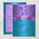Purple, Teal Floral Hearts Monogram Wedding Invite