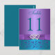 This pretty purple and turquoise blue floral table number post card has a purple PRINTED ribbon and a pair of PRINTED diamond jewels and FAUX glitter joined hearts on it that matches the wedding invitation shown below. You MUST change the number 11 to each number that you need, add it to your cart and then repeat the process until you have all the correctly numbered cards in your cart. If you have any questions or need anything changed, email niteowlstudio@gmail.com.