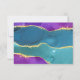 Abstract Watercolor Ink Fuchsia Pink Teal Gold RSVP reply card with a teal font.