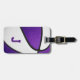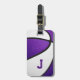 This basketball themed luggage tag features the image of an abstractly oversized basketball that has alternating purple and white panels - personalise with the athlete's monogram on the front, address and phone number on the back - by katz_d_zynes
