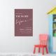 It was an easy experience customizing this poster for our wedding event. The poster arrived on time and looked fantastic! Colors were perfect, alignment was point on. Very happy