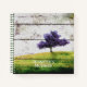 Journal notebook done in graphics of a weathered wood fence look with artwork of a lovely purple tree on a green hill. Personalise the two text fields to read what you want. Great for all your daily thoughts.