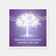 Purple Tree String Lights Wedding Napkins that are personalised with the bride and groom's names and the wedding date. The design features a lighted tree with fairy lights. These are perfect for an evening wedding or garden wedding.
