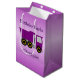 Birthday gift bag truck design. You can customise this birthday gift bag with any text of your choice. Should you require any help with customising then contact us through the link on this page. Purple lorry design personalised birthday gift bag