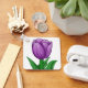 Pretty handpainted purple tulip and green leaves against white background. Purple Monogram on backside with black geometric sqaure. Designed for Aluminium Square style.