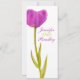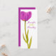 Double-sided single spring purple painted tulip wedding reception dinner menu. Ideal for your wedding tables with purple tulips or spring flowers Design and tulip fine art watercolor painting by Sarah Trett.