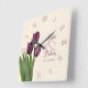 Three rich dark burgundy purple tulip flowers on a cream background with green leaves, and customisable names and date for an anniversary gift, particularly a ruby wedding. The clock has matching numbers in burgundy coloured Roman numerals. You can also replace the background image with a photograph of the happy couple.