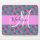Girly and glam purple, lilac, aqua, turquoise and green mermaid glitter sparkles monogram name and initial mouse pad. Your custom name and monogram are written in an elegant hand lettered script with a pink background. A perfect birthday or Christmas gift!