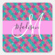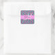 Girly and glam purple, lilac, aqua, turquoise and green mermaid glitter sparkles monogram name and initial square sticker. Your custom name and monogram are written in an elegant hand lettered script with a pink background. A perfect birthday or Christmas gift!