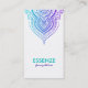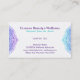 Elegant purple and turquoise ornate geometric paisley design over white background, beauty and wellness business card template.