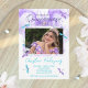 Purple watercolor orchid is beautiful as a background on your elegant purple and turquoise quinceanera invitations. Whimsical purple and turquoise dragonflies surround your photo and script quinceanera party information. This card is ideal for a Springtime or Summertime quinceanera parties. The colours are versatile for purple, lavender, or lilac theme colours. And the purple floral artwork is beautiful with cyan, aqua, aquamarine party themes.