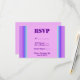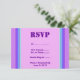 Purple and turquoise striped RSVP card. Personalise with your own information . Select Customise to add details on the back.