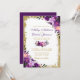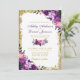 Watercolor Purple Ultra Violet Floral Gold Glitter Wedding Invitation Card - Purple Script - Purple Back