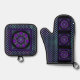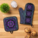 Purple umbrella & hearts .7 oven mitt & pot holder set