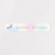 Name labels featuring a purple unicorn and your name on a pastel rainbow background.