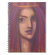 Spiral notebook featuring pastel painting in impressionist style, imaginary portrait of beautiful Eastern girl in purple veil and golden dyadema. Soft pastels on paper, 2020